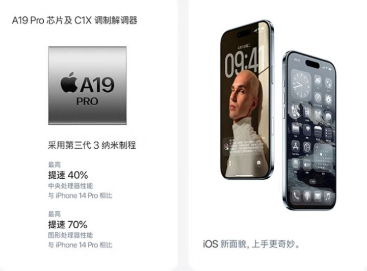 iPhone Air搭载苹果自研的C1X基带芯片,信号接收能力和网络稳定性显著提升。 它搭载的A19 Pro芯片采用第三代3纳米制程工艺,CPU性能比iPhone 17的A18芯片提升约20%。 这意味着无论是日常应用还是轻度游戏,iPhone Air都能提供流畅体验。其5核图形处理器均内置神经网络加速器,AI性能比iPhone 14 Pro提升40%,为未来的AI应用留足了空间。6.5英寸超视网膜XDR显示屏支持ProMotion技术,自适应刷新率最高可达120Hz,滑动体验丝滑顺畅。户外峰值亮度高达3000尼特,即使在强光下也能清晰阅读内容。同时,作为首款仅支持eSIM的国行iPhone,它开启了“无卡时代”的序幕。eSIM不仅更安全(丢失手机后无法轻易移除),还让国际漫游变得更加便捷。