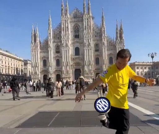 赛后博德闪耀的社媒发布一则视频,视频中是一名博德闪耀球迷在米兰大教堂前颠球,皮球被P成了国米的队徽,博德闪耀配文:BallekiMilano(在米兰颠球)。