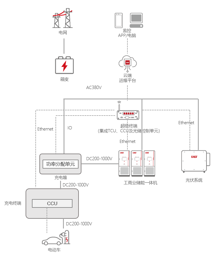 在这一背景下,易事特推出的超级Mix光储充云解决方案,凭借“光伏+储能+充电+云平台”一体化的多能协同架构,正成为推动零碳园区建设的关键引擎。