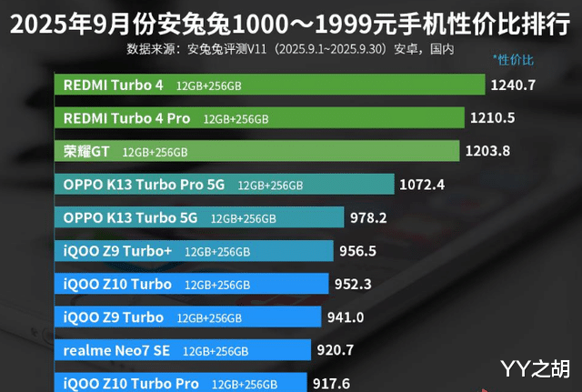 在REDMI Turbo4和REDMI Turbo4 Pro之后,荣耀GT和OPPO K13 Turbo Pro 5G分列第三名和第四名。在安兔兔平台上,这两款智能手机的性价比评分分别为1203.8分和1072.4分。其中,荣耀GT深度融合未来赛车美学,觉醒GT速度之美。其中,飞线设计兼具力量与速度之美的纹理工艺,从镜头出发贯穿机身,立体精雕纹理,有着一体化精致手感的同时,提供简约分明的视觉美感。未来之眼灵感则来源于新时代概念车,通过二次氧化的超跑工艺。